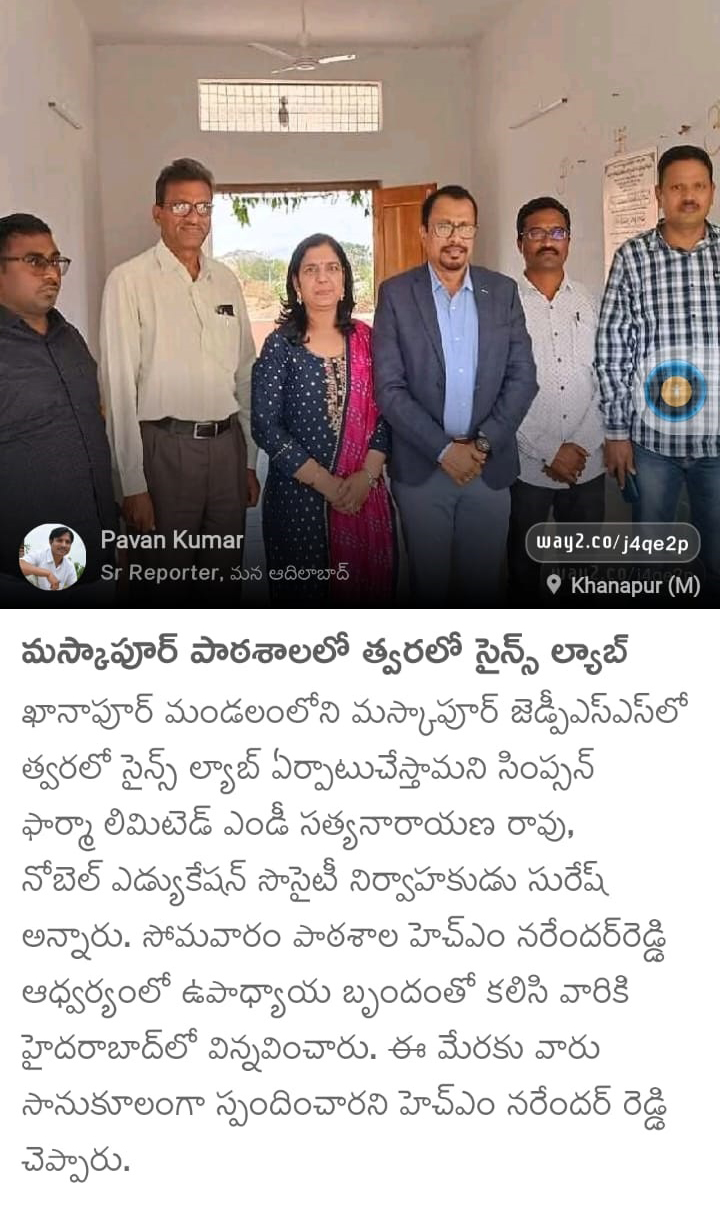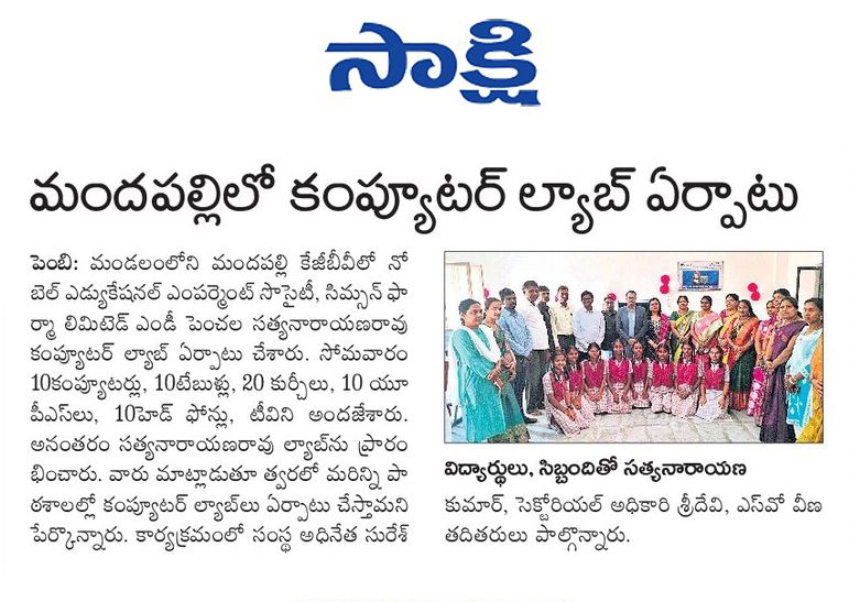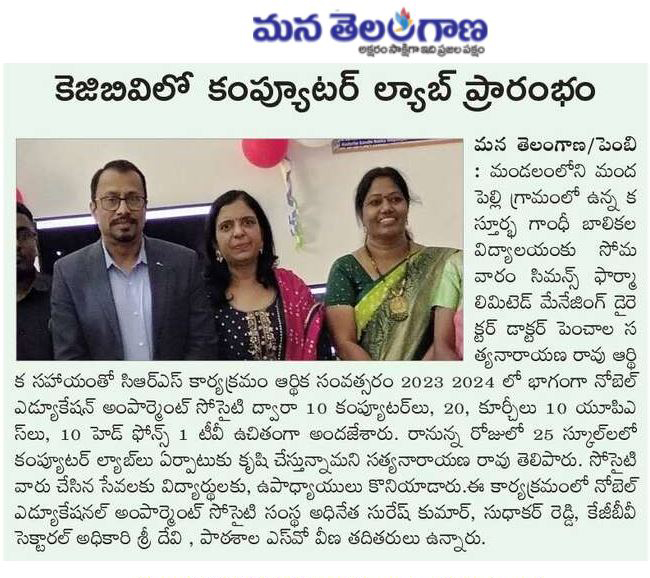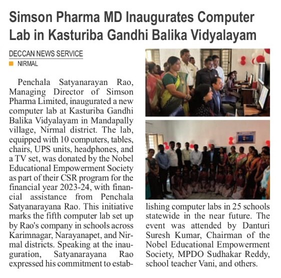 SimSon Pharma Limited's commitment to the "Digital Literacy Program" extends further with the inauguration of the 5th Digital Literacy Lab at Girls High School in a tribal village of Telangana State.