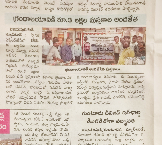 SimSon Pharma Limited, Distributed books and study materials to Andhra Pradesh Residential Junior College,Nagarjuna Sagar,Andhra Pradesh.