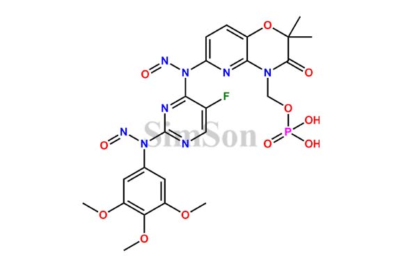 | Chemical Name : | (6-((5-Fluoro-2-(nitroso(3,4,5-trimethoxyphenyl)amino)pyrimidin-4-yl)(nitroso)amino)-2,2-dimethyl-3-oxo-2,3-dihydro-4H-pyrido[3,2-b][1,4]oxazin-4-yl)methyl dihydrogen phosphate |