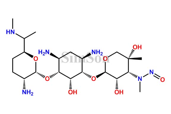 | Chemical Name : | N-((2R,3S,4R,5R)-2-(((1S,2R,3R,4S,6R)-4,6-Diamino-3-(((2R,3R,6S)-3-amino-6-(1-(methylamino)ethyl)tetrahydro-2H-pyran-2-yl)oxy)-2-hydroxycyclohexyl)oxy)-3,5-dihydroxy-5-methyltetrahydro-2H-pyran-4-yl)-N-methylnitrous amide |